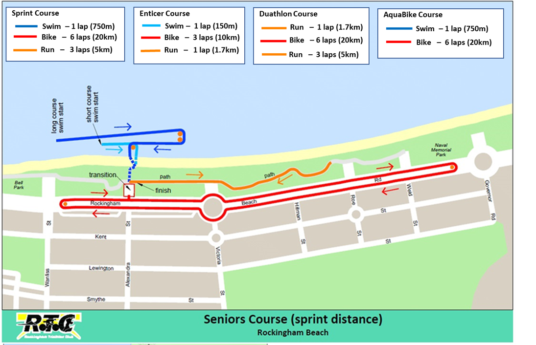 Road closures for the RTC Sprint Distance Triathlon will be from 7am to 10:30am incorporating, Rockingham Beach Road from Wanliss Street to Governor Road.